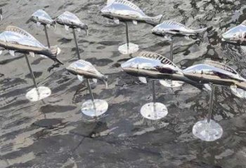 抽象創(chuàng)意不銹鋼鏡面小魚噴泉擺件